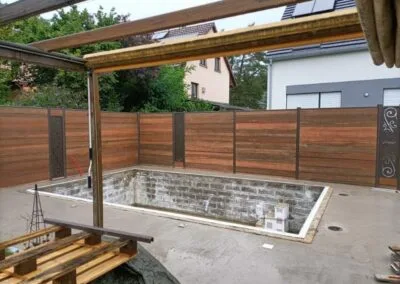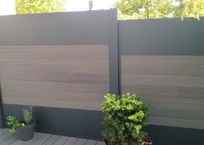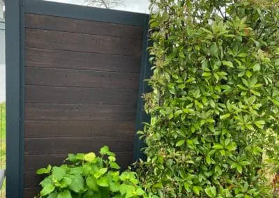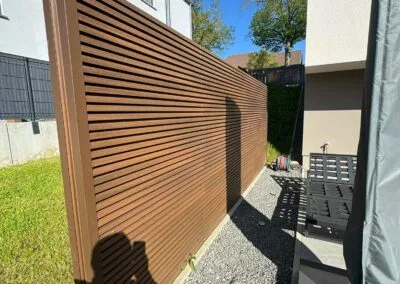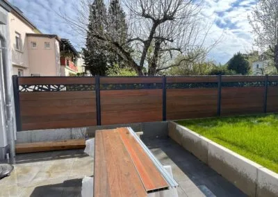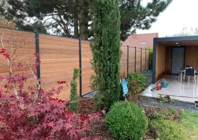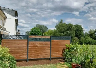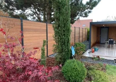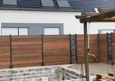 Nous avons opté pour une clôture en bois et un brise-vue sur mesure. Le résultat est parfait ! Les deux éléments se marient bien avec notre extérieur et la pose a été rapide et propre.