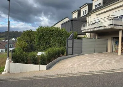Chez Paysage Luxembourgeois, chaque installation est unique. Nous vous accompagnons dans le choix des matériaux et du style pour que votre clôture corresponde parfaitement à vos attentes. Nous nous assurons que l’installation respecte les normes de sécurité, tout en minimisant l’impact sur votre jardin. Nos clôtures sont conçues pour s’adapter à tous types de terrains, qu’il s’agisse de petites zones résidentielles ou de grandes propriétés.