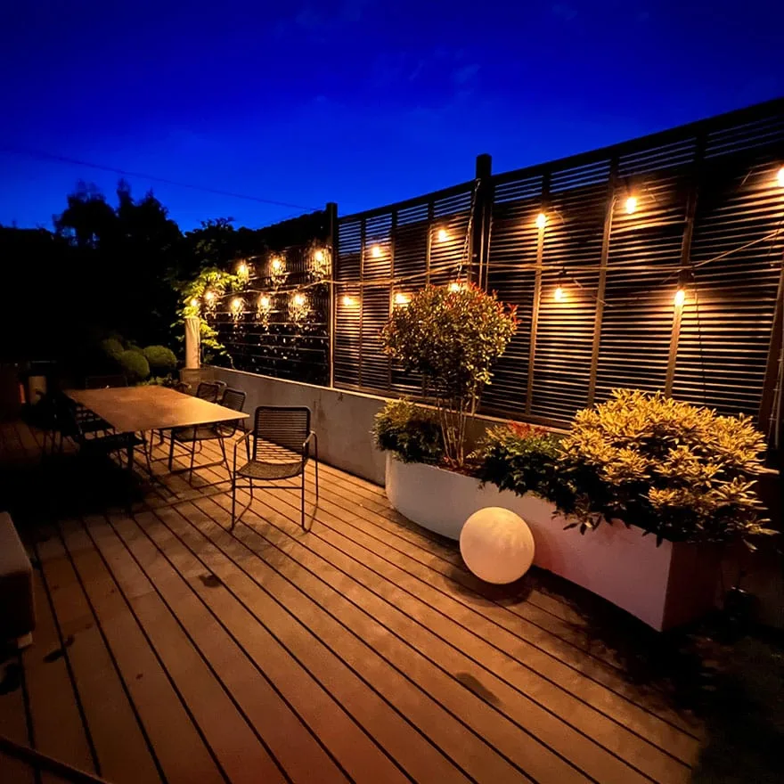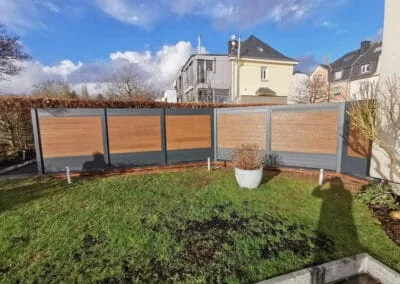 Chez Paysage Luxembourgeois, nous croyons que chaque brise-vue doit être unique, tout en s’intégrant harmonieusement dans l’environnement extérieur de votre maison. Nous vous proposons des solutions totalement personnalisées, qu’il s’agisse de brise-vue en bois naturel pour une touche organique ou de panneaux métalliques perforés pour un look plus moderne et industriel. En plus de ces options de design, vous pouvez choisir parmi une large gamme de finitions et de couleurs, vous permettant ainsi d’ajouter une véritable signature esthétique à votre jardin ou terrasse.